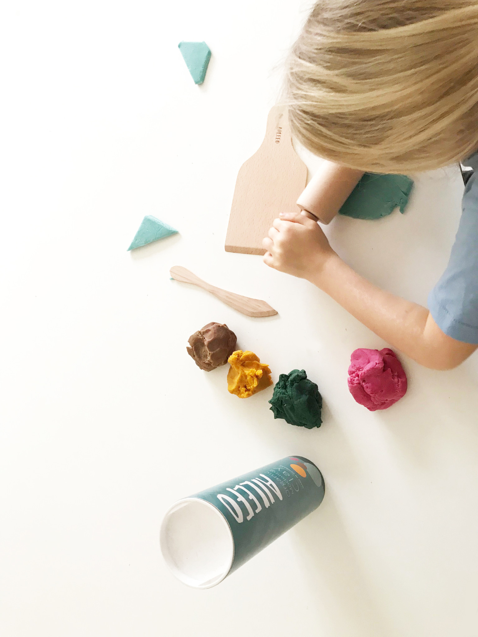 Set van houten snijplank, houten mesje en houten roller. Perfect om te spelen met klei of kinetic sand. Geleverd in een handig netje. Lees meer