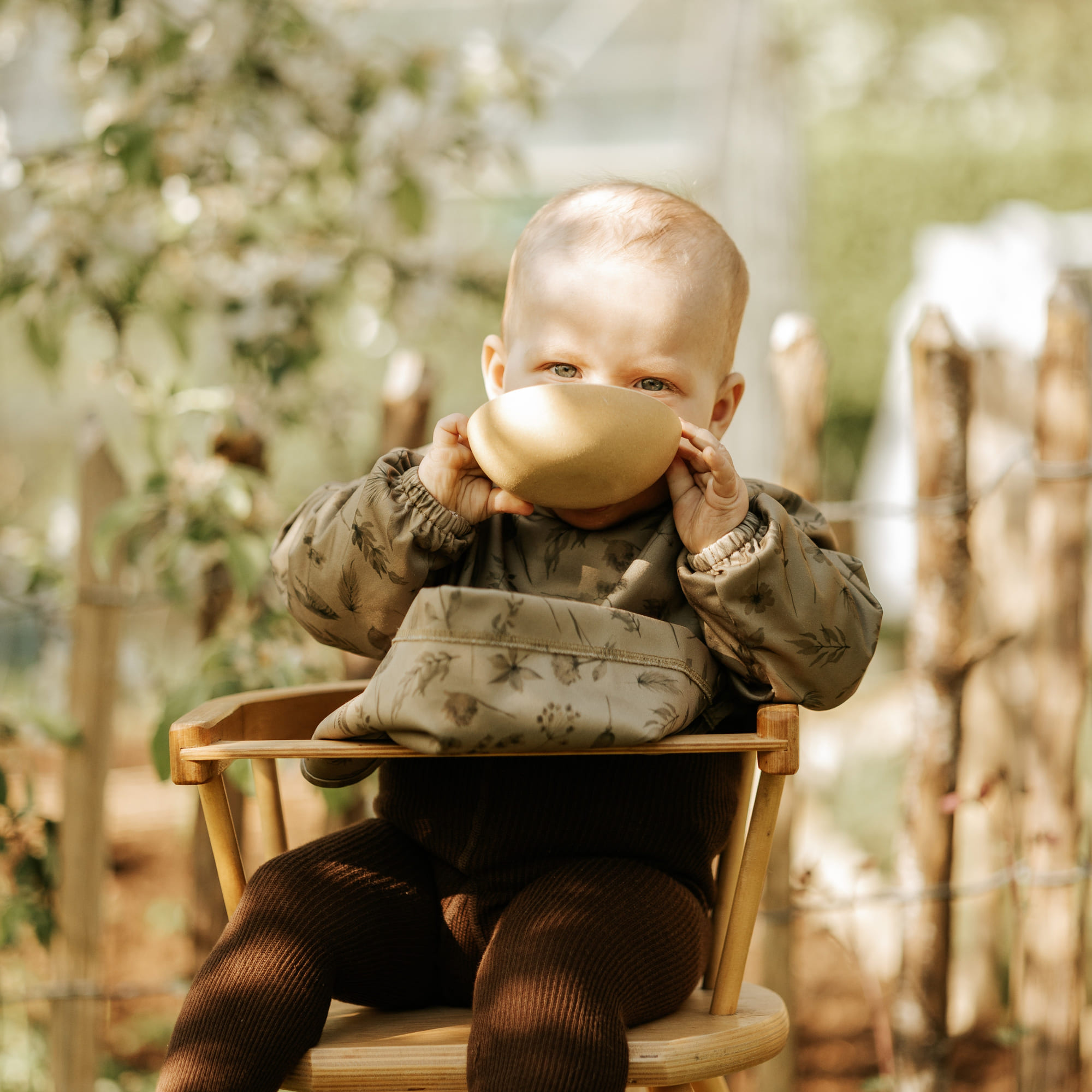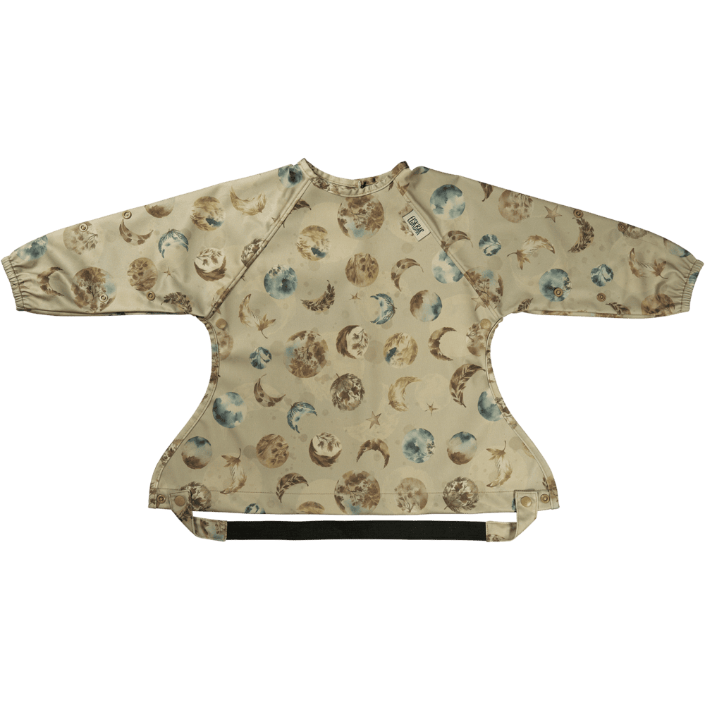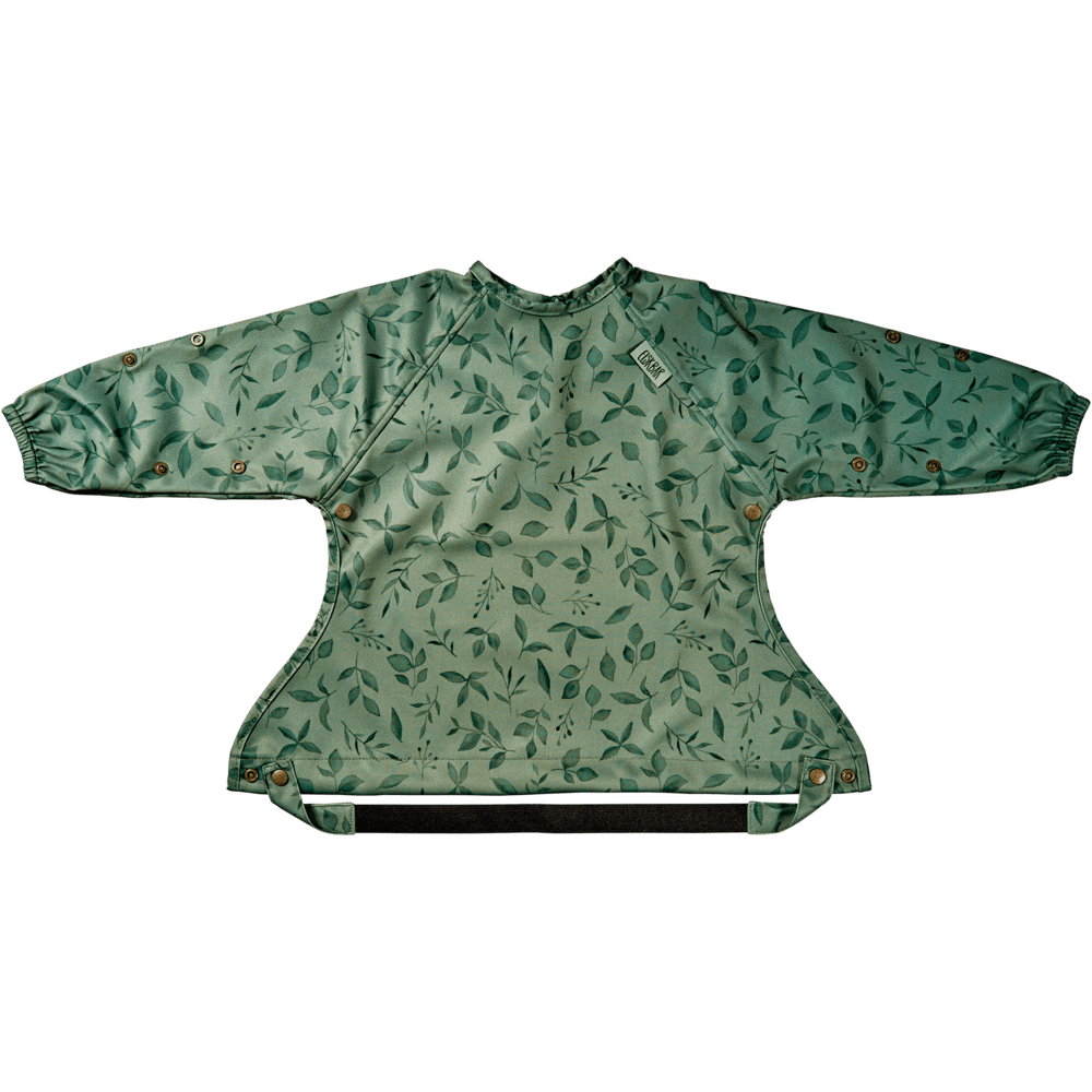 Deze mouwslab is de perfecte oplossing voor kindjes die graag zelf eten willen ontdekken. De slab sluit hoog op de rug en kan op twee standen gesloten worden. In het uiteinde van de mouw zit een zacht elastiek, waardoor deze altijd goed aansluit bij de pols. De lengte van de mouwen is makkelijk aan te passen door de drukknoopjes. Hierdoor is deze mouwslab geschikt voor kindjes van ongeveer 6 maanden tot 2,5 jaar. De totale lengte van de slab is 39 cm