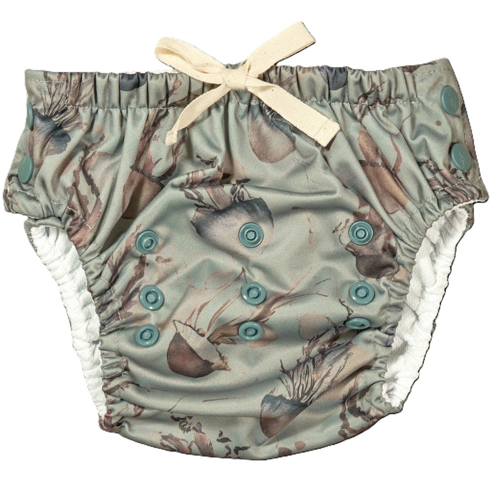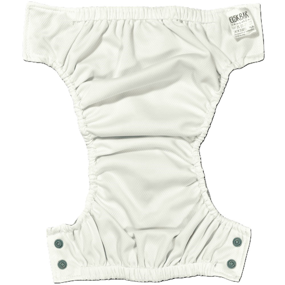 Door de elastieken bij de buik en rug kan deze zwemluier aangetrokken worden als een zwembroekje. Er zit ook een drukknoopjes sluiting aan de zijkant, zodat de zwemluier makkelijk te verschonen is bij ontlasting. Met de zijsluiting kun je de zwemluier ook naar maat afstellen.