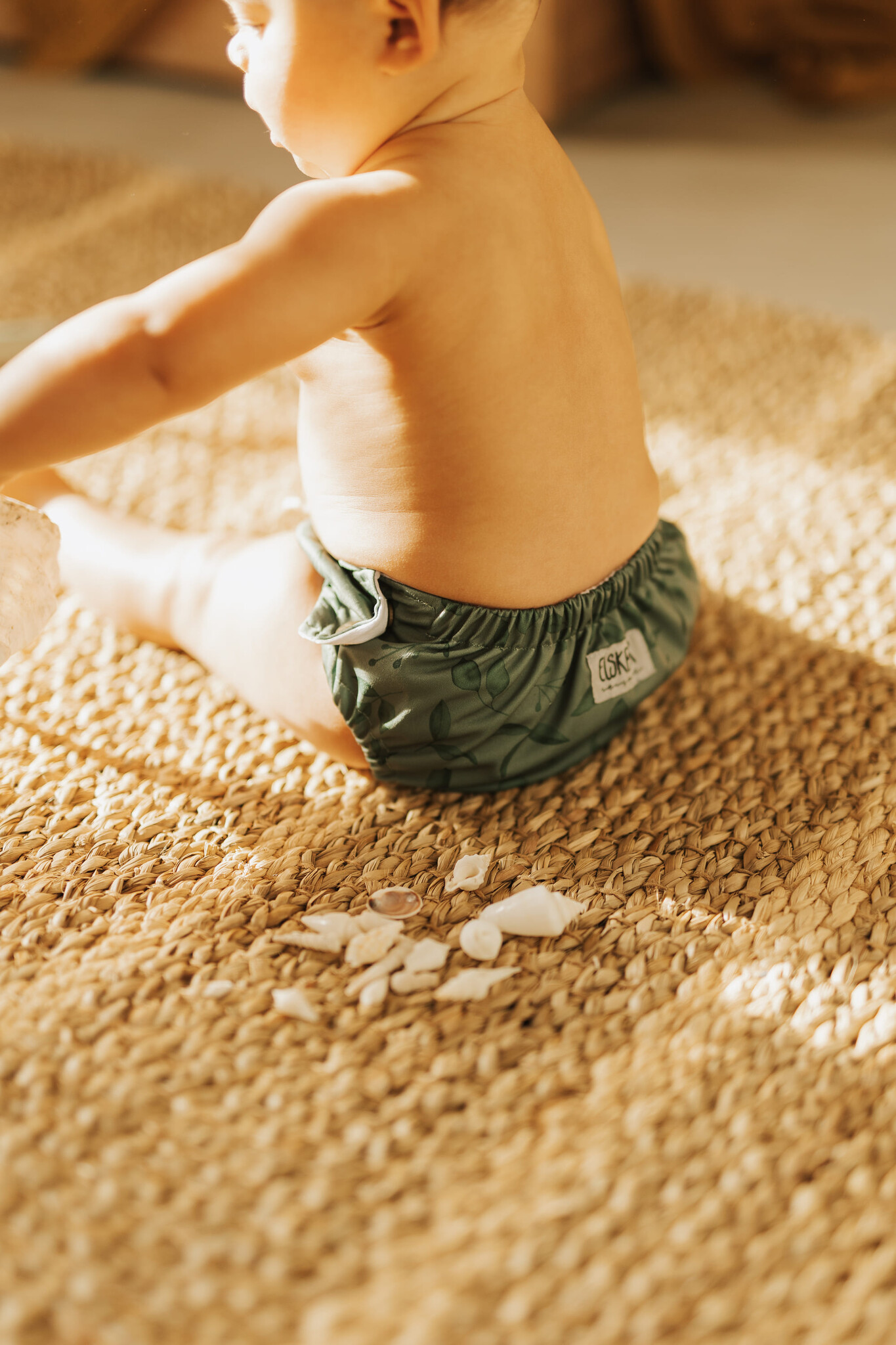 Door de elastieken bij de buik en rug kan deze zwemluier aangetrokken worden als een zwembroekje. Er zit ook een drukknoopjes sluiting aan de zijkant, zodat de zwemluier makkelijk te verschonen is bij ontlasting. Met de zijsluiting kun je de zwemluier ook naar maat afstellen.