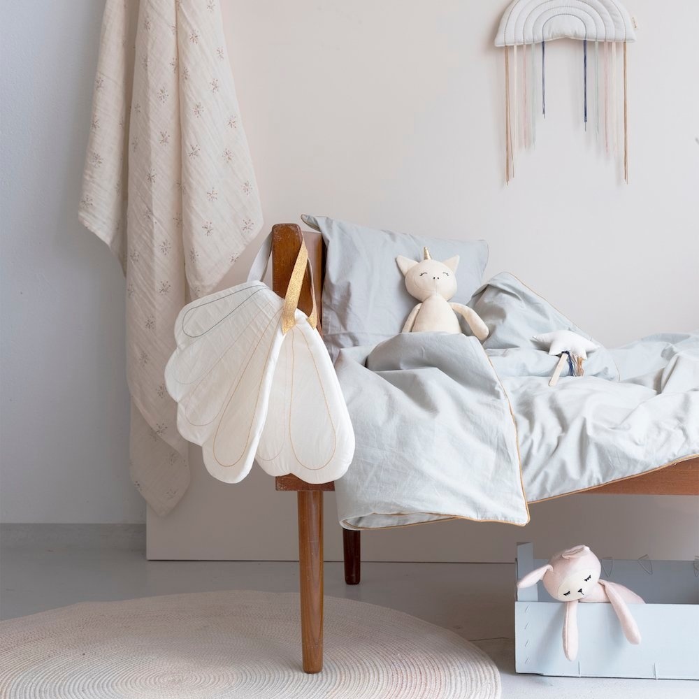De vleugels zijn gemaakt van organisch katoen en gevuld met schuim, zodat ze mooi in vorm blijven. De spandwijdte van de vleugels is 55 cm. De vleugels hebben goud elastiek, waardoor het omdoen en dragen gemakkelijk gaat.