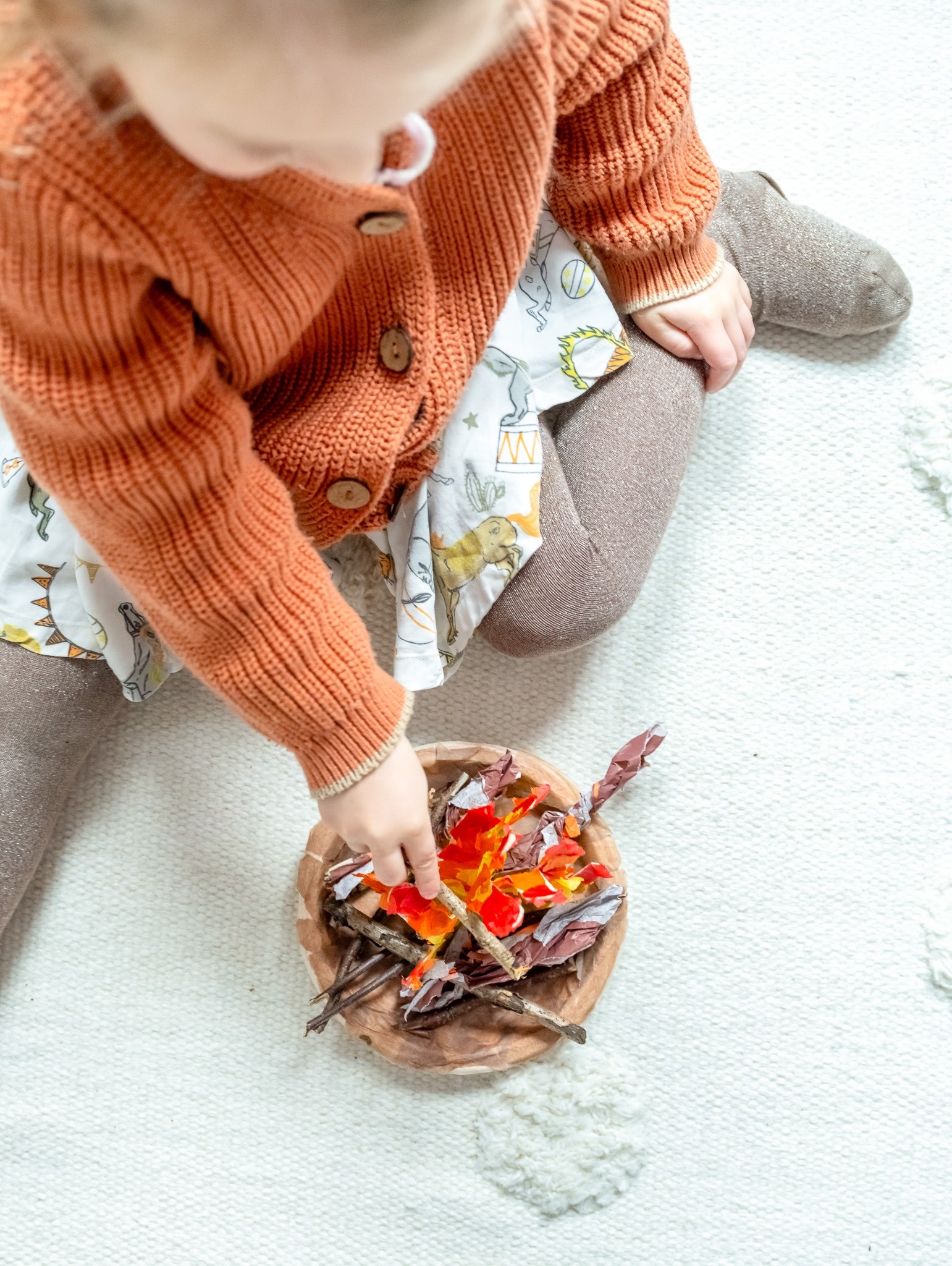 Het kampvuur maak je helemaal af door zelf gezochte takken uit de natuur. Daarna kan je hem een mooi plekje geven in je slaapkamer, woonkamer of ander speciaal plekje! Je kan er naar kijken, mee spelen, maar nét wat jij wilt!