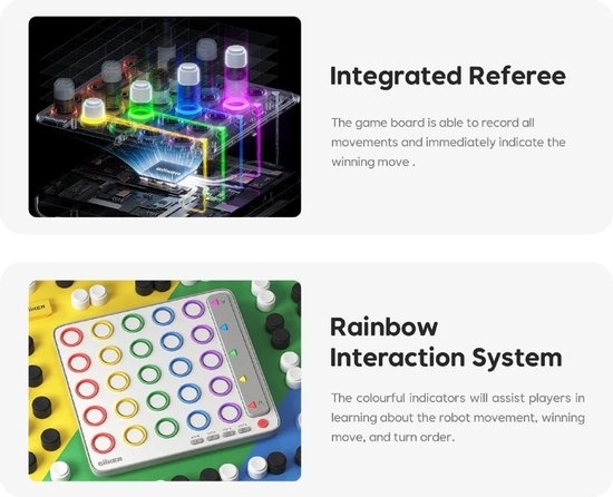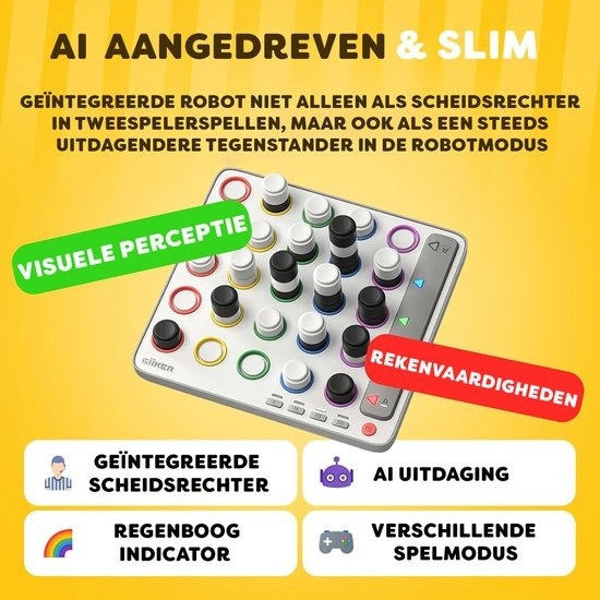 Je kunt tegen de computer spelen in drie verschillende moeilijkheidsniveaus, of je speelt tegen een andere speler. Het lampje laat zien wie er aan de beurt is. Het bord registreert alle zetten en bepaalt wie er gewonnen heeft.