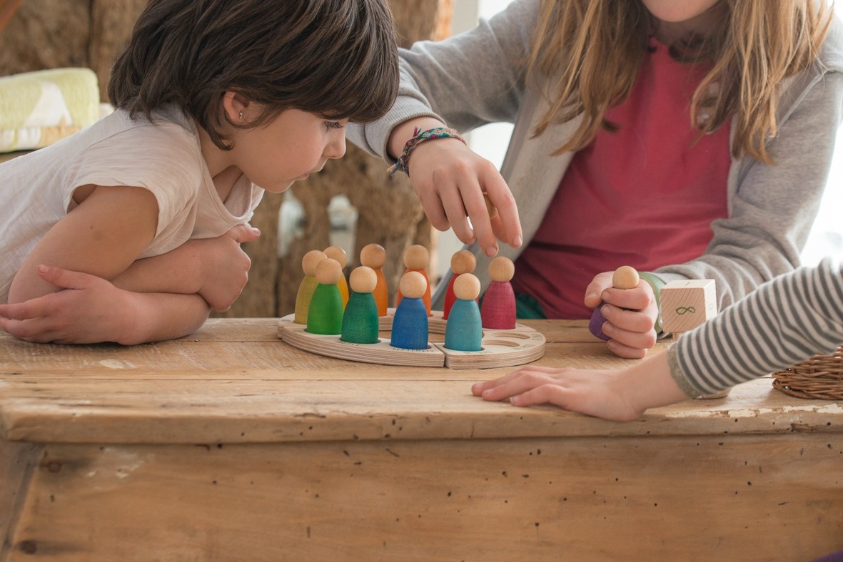 De kleuren van de poppetjes, ook wel Nins genoemd, representeren de seizoenskleuren. Met de cijferblokjes kun je aangeven welke dag het is. Het houten kommetje kan in het midden gezet worden en kan worden gevuld naar eigen ingeving. Denk hierbij aan producten die bij het seizoen horen, gevonden schatten van buiten of andere losse items van Grapat.