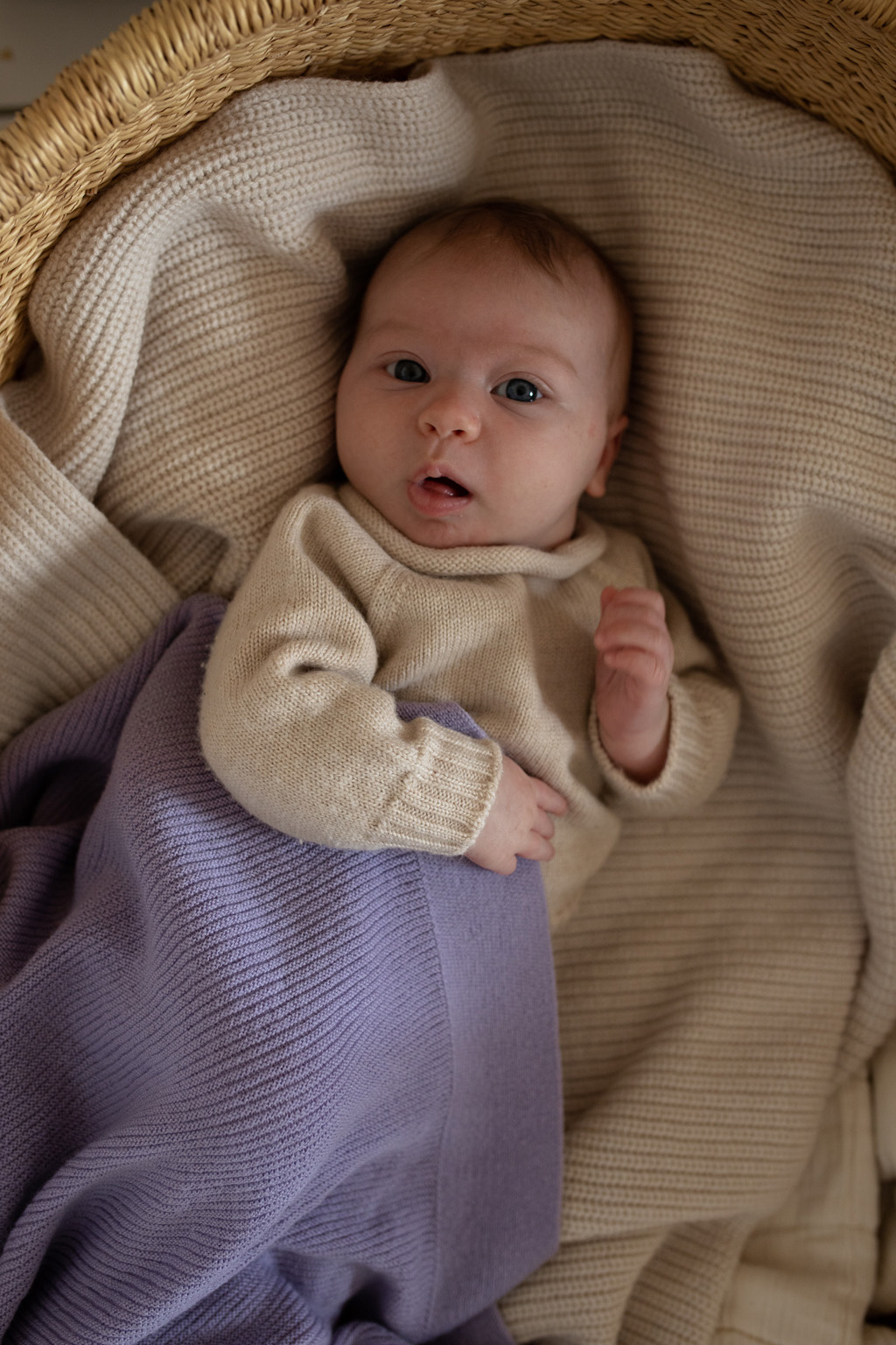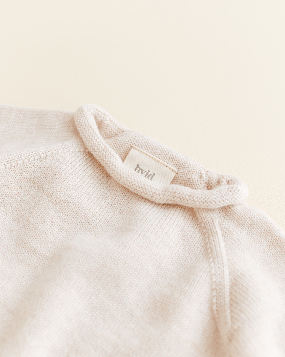 Deze fijne wollen trui Georgette van Hvid is uit één stuk gebreid waardoor deze erg comfortabel draagt. In de boord rond de nek is een elastische draad gebruikt, waardoor je de trui zeer makkelijk over het hoofd van je kindje trekt. Als de trui eenmaal aan is, sluit de hals weer mooi aan. De gebruikte wol is 100% merinowol, met OEKO-TEX certificaat en mulesing free. Deze wol kriebelt niet en de trui is dan ook zeer geschikt voor kindjes met een gevoelige huid en voor kindjes met eczeem. Voor een oversized look kun je een maatje groter kopen.