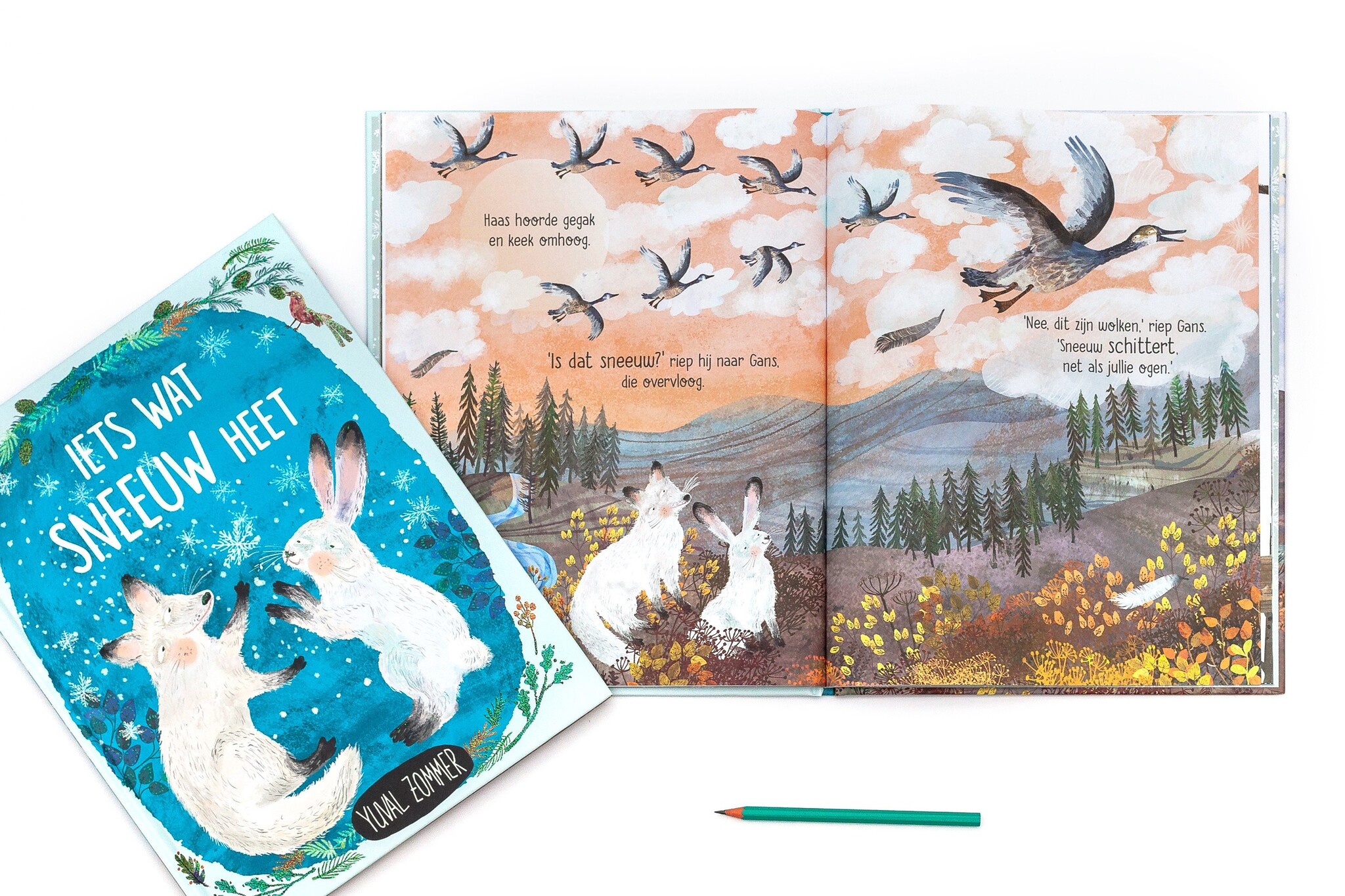 Poolvos en Poolhaas worden geboren in de lente, groeien samen op en worden elkaars beste vrienden. Op een dag neemt Stern afscheid. 'De winter komt eraan. Ik vertrek. Nog even en jullie kunnen spelen in iets wat sneeuw heet.' Voordat hij uit kan leggen wat sneeuw dan is, is hij al weg. Dan begint de zoektocht van Poolvos en Poolhaas. Onderweg komen ze veel dieren tegen die hen helpen bij hun zoektocht. Aan het einde van de dag zijn ze moe en ver van huis. Ze vallen opgekruld tegen elkaar aan in slaap. En dan begint er iets te dwarrelen...