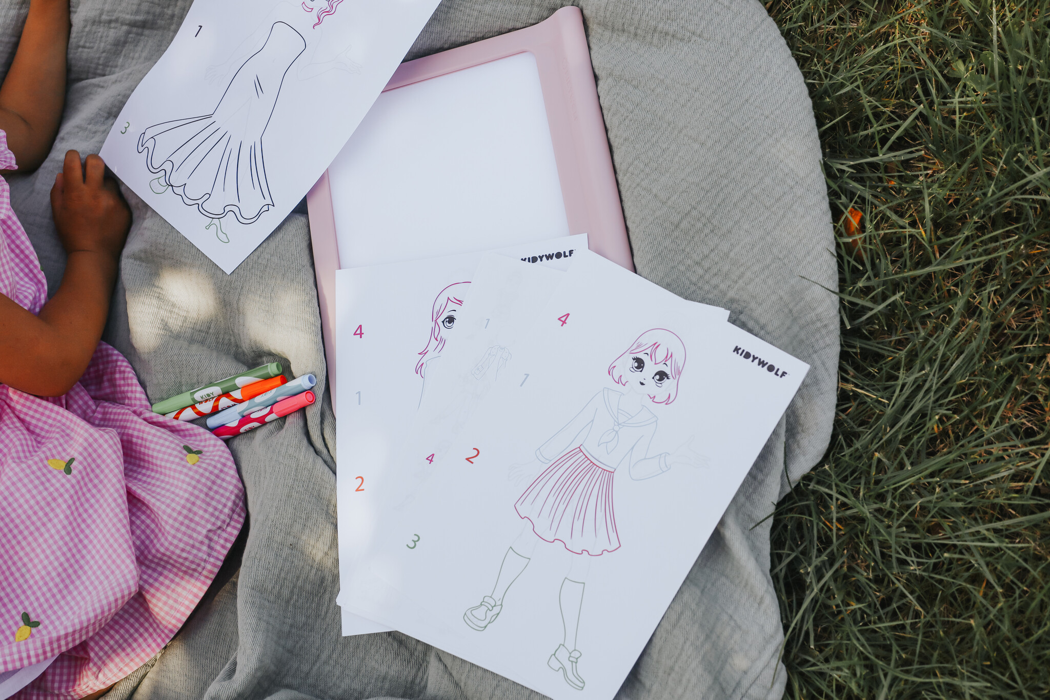 De Kidydraw-Pro is een compact en draagbaar oplichtend tekentablet. De voorkant heeft een lichtgevende functie, waarmee kinderen zelf outfits kunnen creëren, aan de hand van sjablonen.