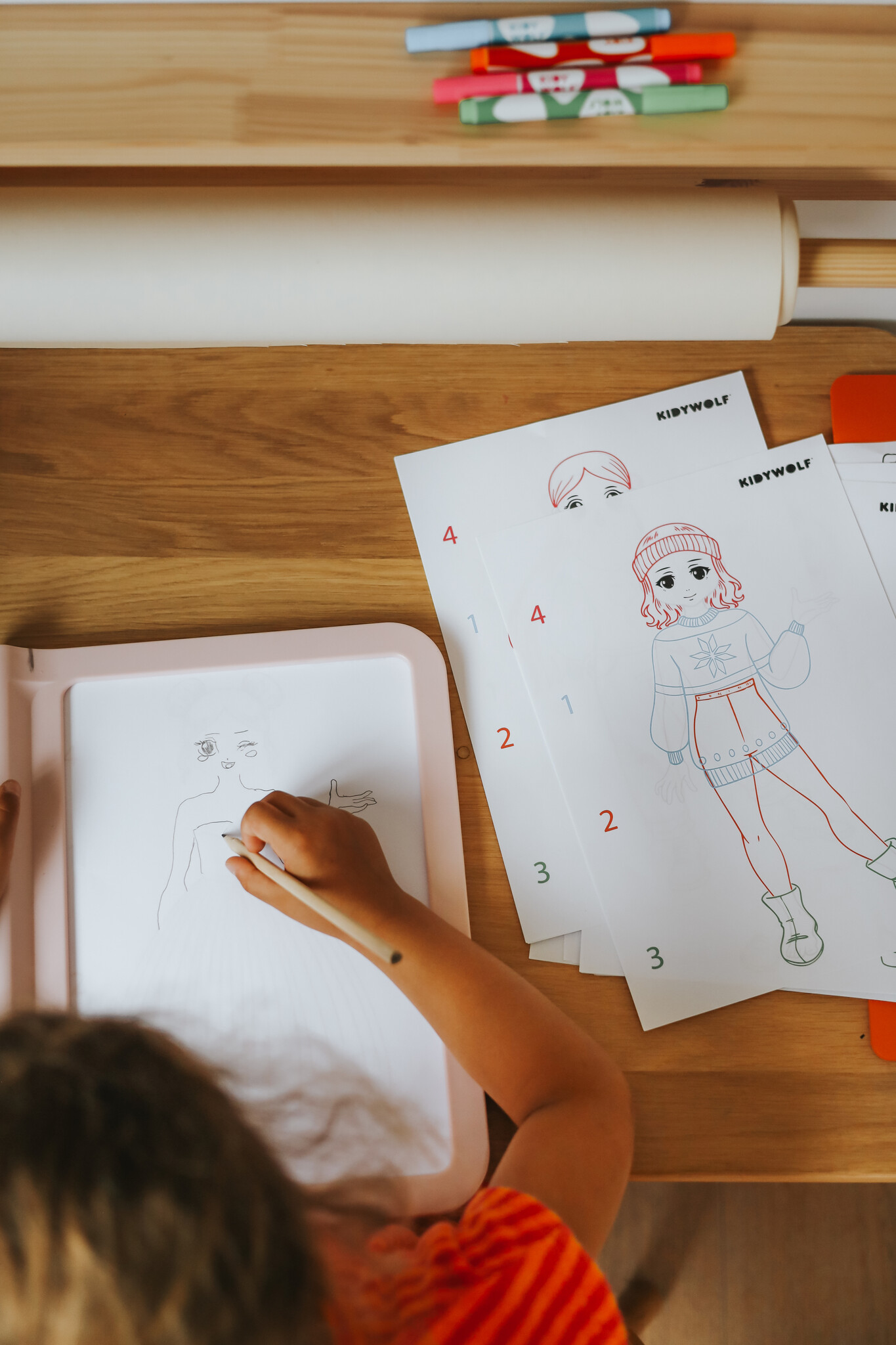 Met de sjablonen kunnen ze silhouetten, outfits, accessoires en motieven eindeloos combineren. Er zijn meer dan 1000 combinaties mogelijk, net als in een echt modeatelier!