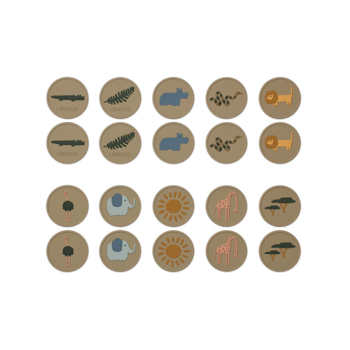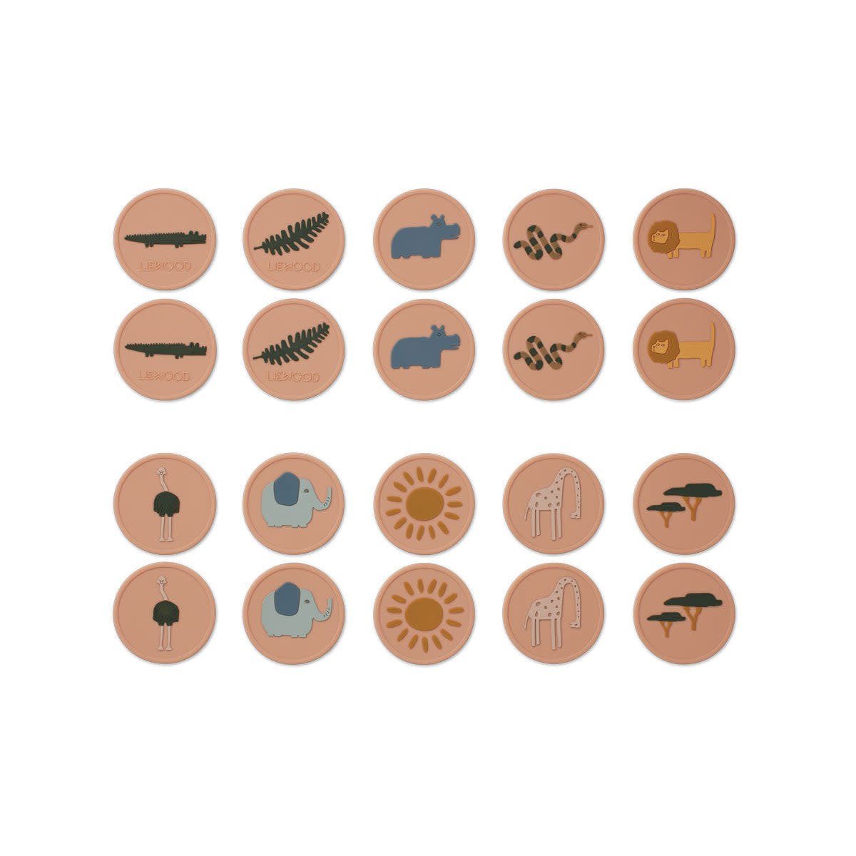 Super leuk memory spel met 20 siliconen fiches. De leuke safari tekeningen maken ieder kind enthousiast! Onbreekbaar en een ouderwets vermakelijk spel.