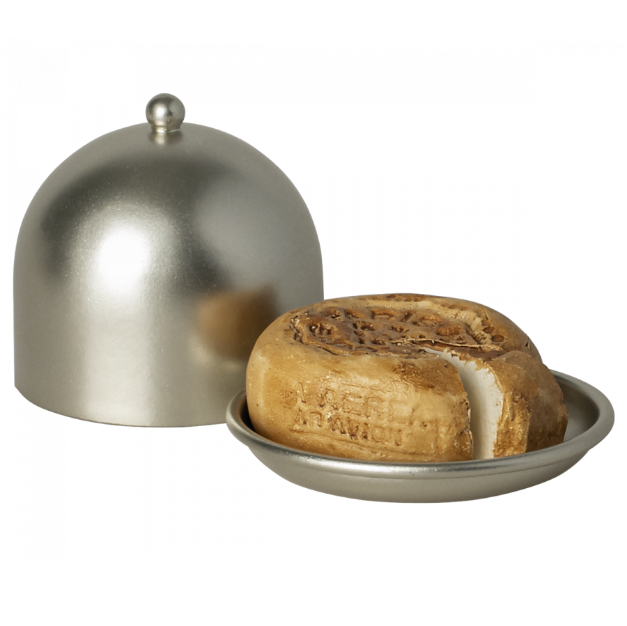 Serveer het lievelingseten van de Maileg muizen in deze chique metalen kaasstolp. Wordt geleverd met een speelgoed kaasje erin.