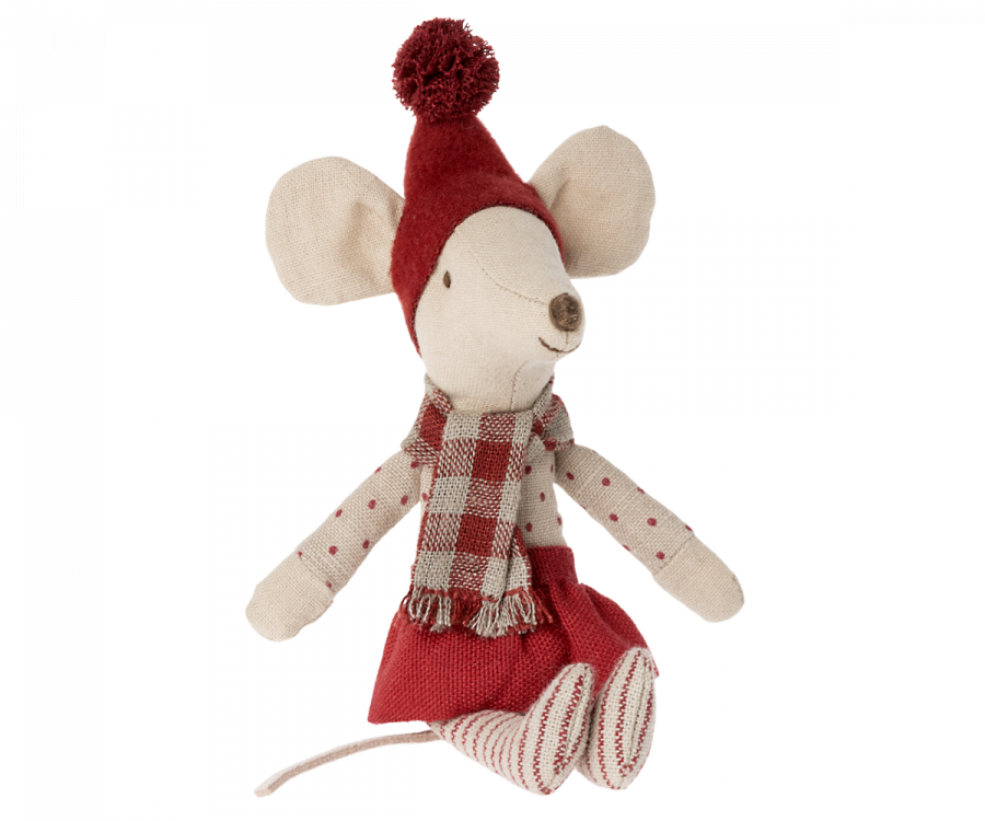 A sweet and adorable small friend, nicely dressed up for Christmas. The mouse fits perfectly into the Gingerbread house.