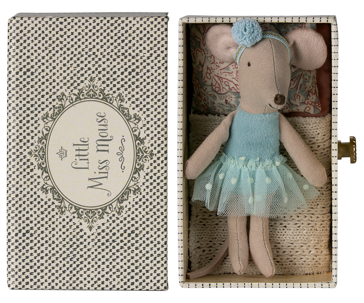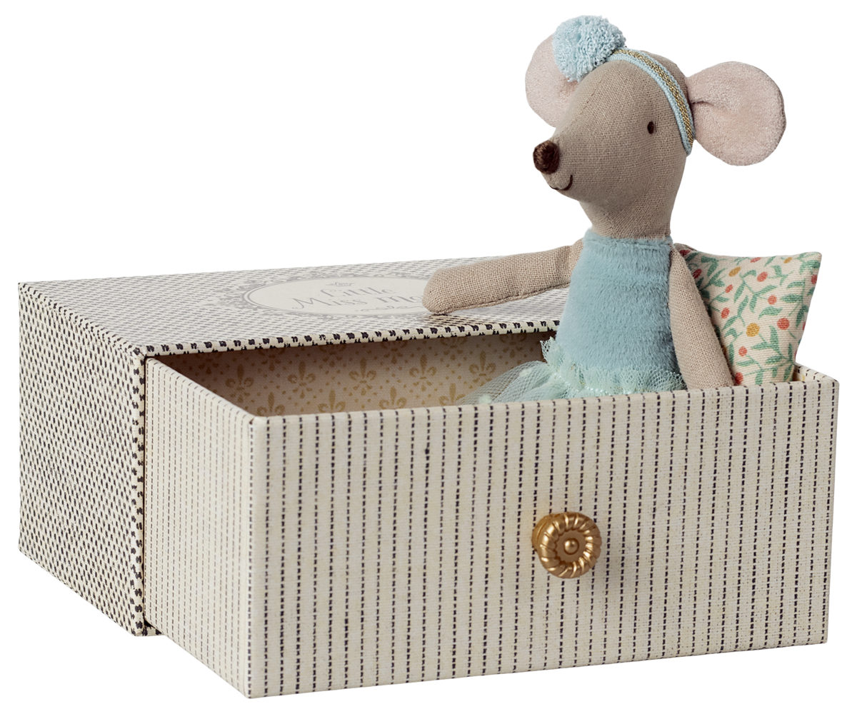 Superschattig deze kleine zus van de toffe Maileg-collectie. Een lief dansmuisje in een doosje. En in dit doosje zit een heus dekentje, kussentje en matrasje. Lees meer