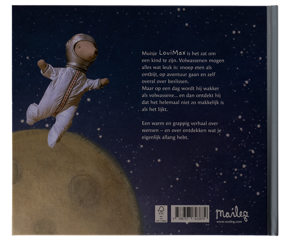 In dit lieve boek staat LouiMax centraal. LouiMax is één van de Mailegmuizen en hij droomt ervan om volwassen te zijn. Dan mag je namelijk zoveel! Snoep eten, op avontuur gaan en zelf beslissingen maken. Maar op een dag wordt LouiMax wakker als volwassen Muis...