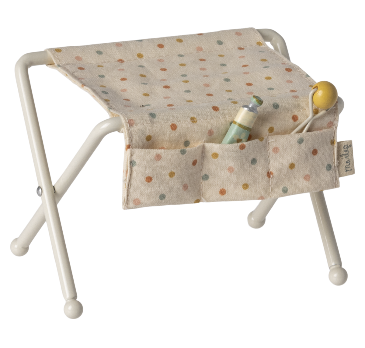 Als de muizenbaby een schone luier nodig heeft dan is deze verschoontafel ideaal. Met de nursery table heb je alles bij de hand. Inclusief een tube créme en een rammelaar voor de baby. Na gebruik kunnen Mama of Papa muis de tafel makkelijk inklappen.
