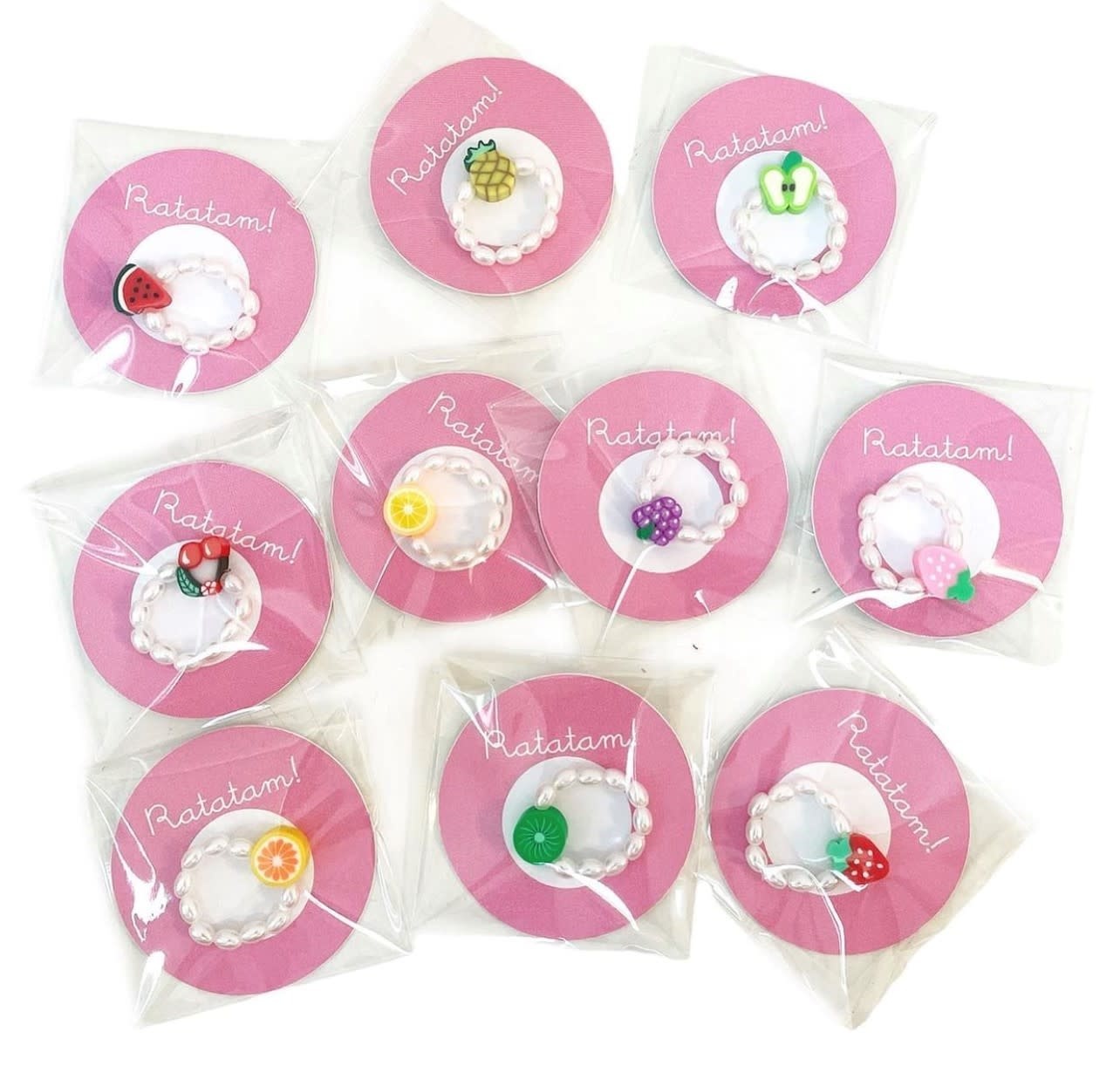 Leuke kinderringen met elastiek en een fruitkraal. Door het elastiek kan deze ring makkelijk om worden gedaan en zijn daardoor ook geschikt voor alle vinger maten.