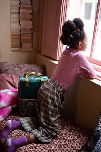 On the front you find an extra pocket. The lining is waterproof and has a sprinkles pattern.