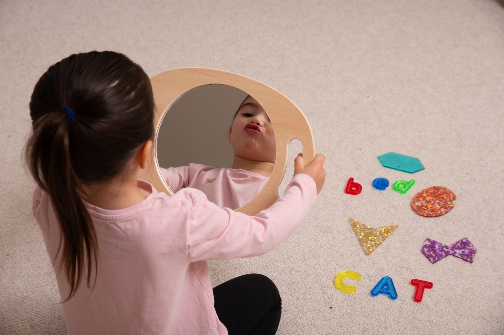 Met deze spiegel van TickiT leren kinderen zichzelf ontdekken op een speelse manier. De spiegel is geschikt voor vele activiteiten, bijvoorbeeld zelfobservatie, rollenspel, emoties leren herkennen, verkennen van symmetrie en andere waarnemingsvaardigheden. Laat kinderen experimenteren met reflecties, gezichtsuitdrukkingen en hun omgeving.