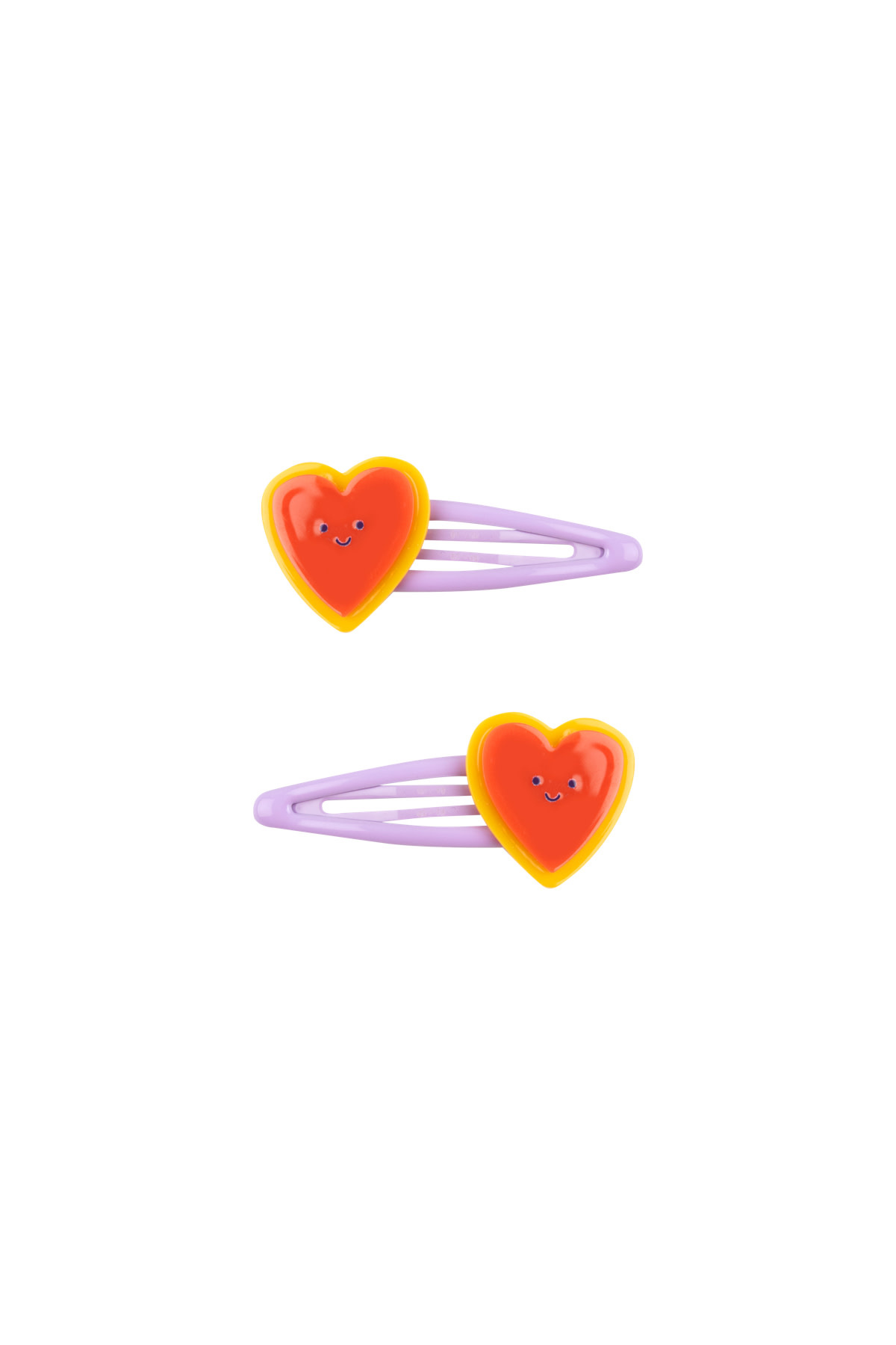 De haaraccessoires van Tiny zijn toch te leuk?! Een mooie set van twee knipjes, met een paarse kleur en een leuke hart smiley applicatie.