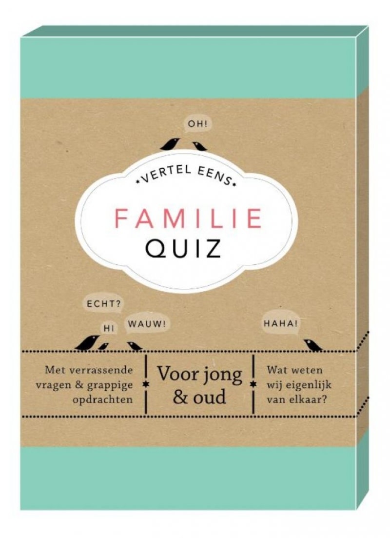Je kent elkaar als geen ander, je bent tenslotte familie. Toch zijn er waarschijnlijk ontzettend interessante en grappige weetjes over je opa, oma, ouders, broer of zus die je nooit eerder hebt gehoord. Met de Vertel Eens Familie Quiz van Elma van Vliet ontdek je het op de leukste manier.