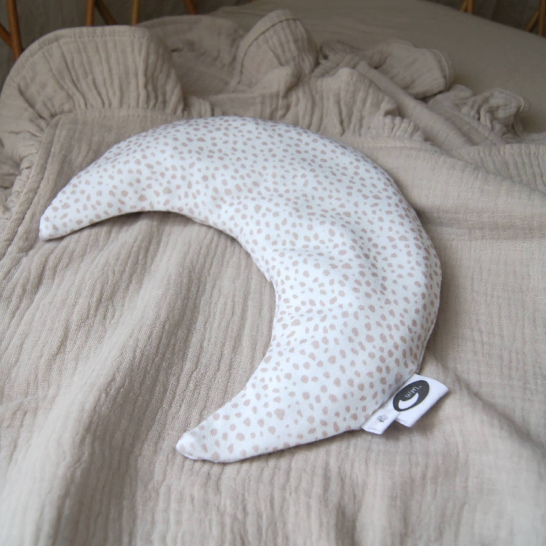 Het Warmtemaantje is een handgemaakt warmtekussen gevuld met biologisch gereinigde kersenpitten. Door de unieke vorm en het gewicht is dit pittenkussen ideaal voor darmkrampjes. De vulling is zo verdeeld dat het niet naar de zijkanten zakt. Daarnaast drukt het warmtekussen niet op het maagje, maar alleen op de onderbuik, terwijl het in de zij ook lekker mee warmt.