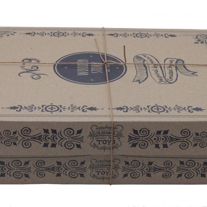 De bak met blokken wordt geleverd in een mooie kartonnen doos.