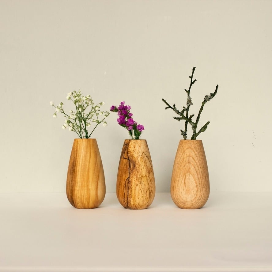 Prachtig decoratief houten vaasje van niet-geïmpregneerd hout. Zeer mooi als decoratie met een tak of droogbloem erin. Dit vaasje is 9 cm hoog. Lees meer